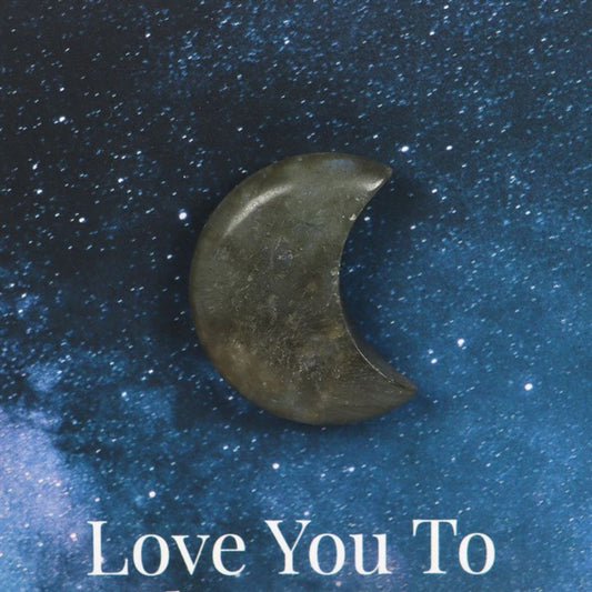 Moon & Back Labradorite Crystal Moon Greeting Card