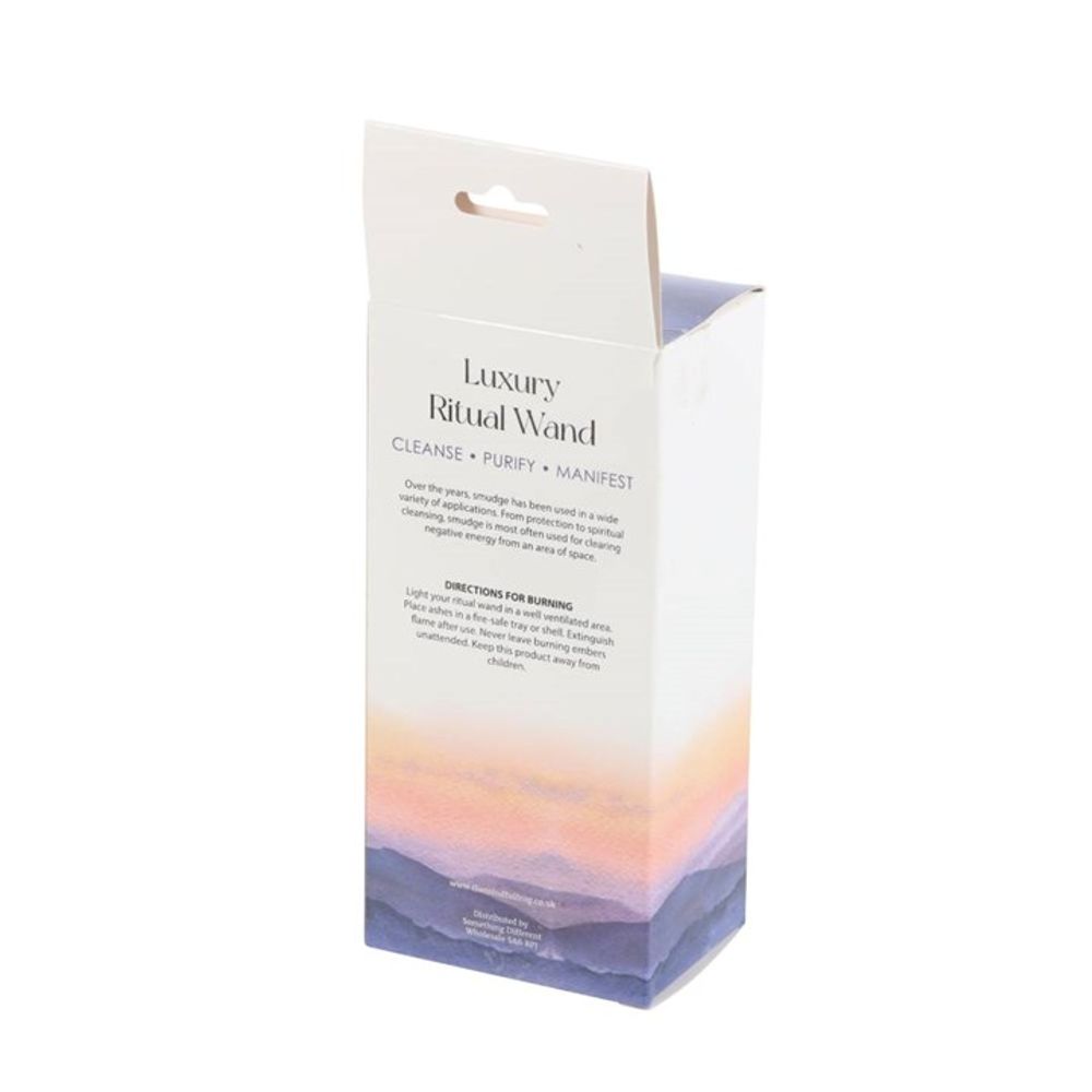 The act of ‘smudging’ is a traditional Native American practice used to cleanse and purify spaces using the smoke of burning sacred herbs. Sustainably sourced and made in the USA, this beautiful ritual wand features fragrant rosemary, lavender flowers, abalone shell pieces and dried green flowers thoughtfully handtied into a tight bundle for burning and display. To use, light the end of the sage stick and allow to smoulder, place into a heat-resistant bowl or shell and gently disperse the smoke throughout the area to dispel negative energies. Fully extinguish after use and keep away from pets and children.