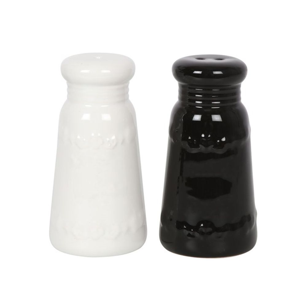 This gothic cruet set includes a white ceramic cruet with the text 'Ashes to Ashes' and a black cruet with the text 'Dust to Dust'. Perfect for salt and pepper. Exclusive to Something Different Wholesale and designed by our in-house creative team. This set would be welcome on any witch's table and makes for a great conversion starter. Product Dimensions: H10cm x W5cm x D5cm Packaged Dimensions: H11cm x W12cm x D6cm
