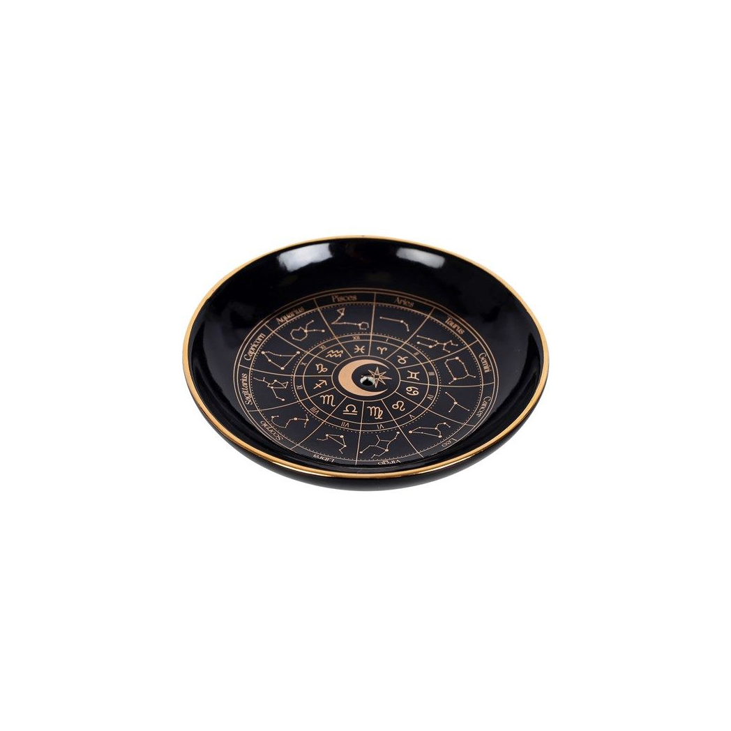 This beautiful black incense dish depicts the astrology wheel in intricate, gold effect detail for a premium look. The holder is thoughtfully designed to accommodate both incense sticks and cones, featuring a small hole in the centre for sticks and a flat stable surface suitable for burning cones. A gorgeous finishing touch for any home with celestial-inspired decor.