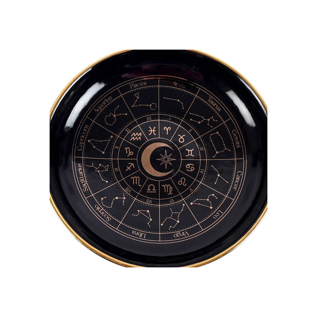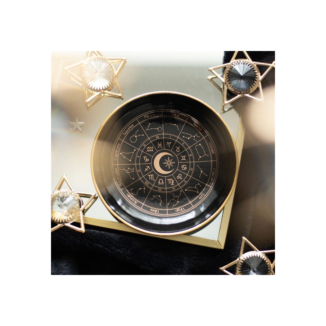 This beautiful black trinket dish depicts the astrology wheel in intricate, gold effect detail for a premium look. A gorgeous piece for storing treasured trinkets and jewellery, and a finishing touch for any home with celestial-inspired decor.