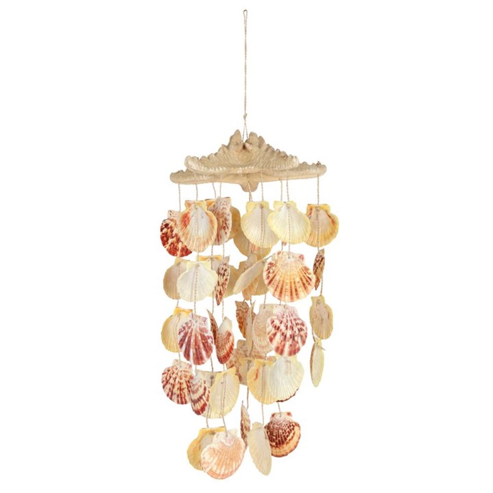 This beachy mobile features 10 strings of coloured shells hanging from a horn starfish. Great for traditional seaside decor both inside and out. Approximately 38cm long. Product Dimensions: H50cm x W18cm x D18cm Packaged Dimensions: H10cm x W24cm x D24cm