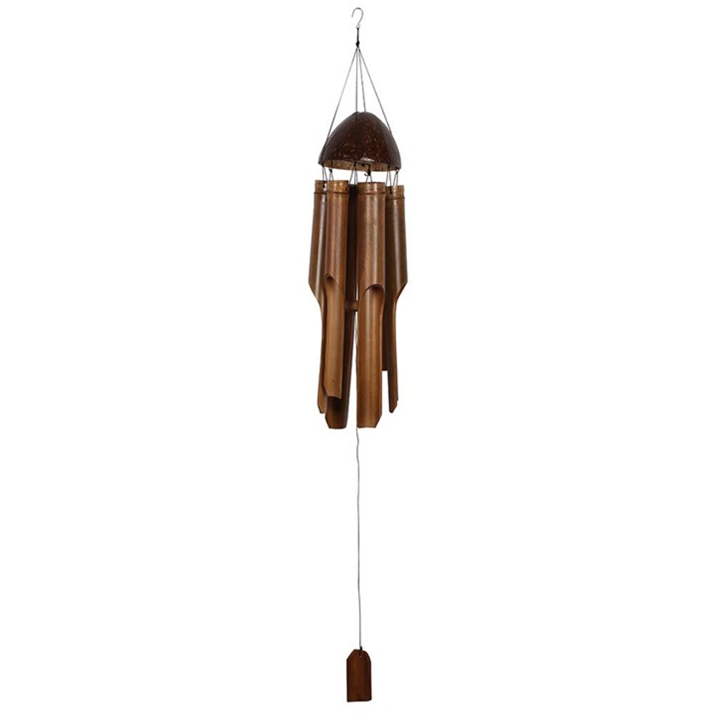 This lovely Bamboo windchime has several bamboo tubes in different lengths suspended from a coconut shell. As the breeze catches the windchime, the carved bamboo chimes knock together to create a distinct natural and relaxing sound. All of our Bamboo windchimes are ethically sourced, made from sustainable wood and sourced from Bali. Product Dimensions: H72cm x W12.5cm x D12.5cm Packaged Dimensions: H46cm x W13cm x D13cm
