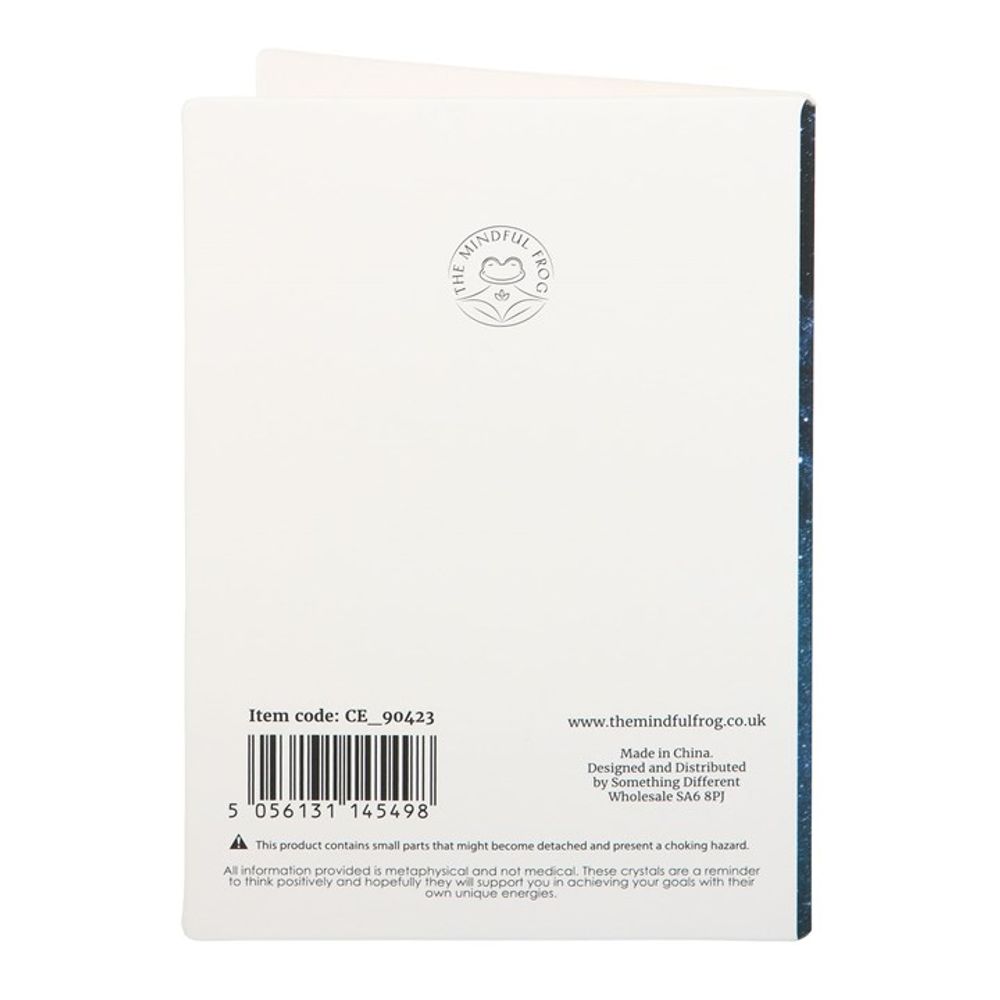 Give the gift of magic with this meaningful crystal greeting card. Includes a small labradorite crystal crescent moon attached to a greeting card with 'Love you to the moon and back’ text. Labradorite is a spiritual stone used for strength, intuition and protection. Card left blank inside. Envelope included.