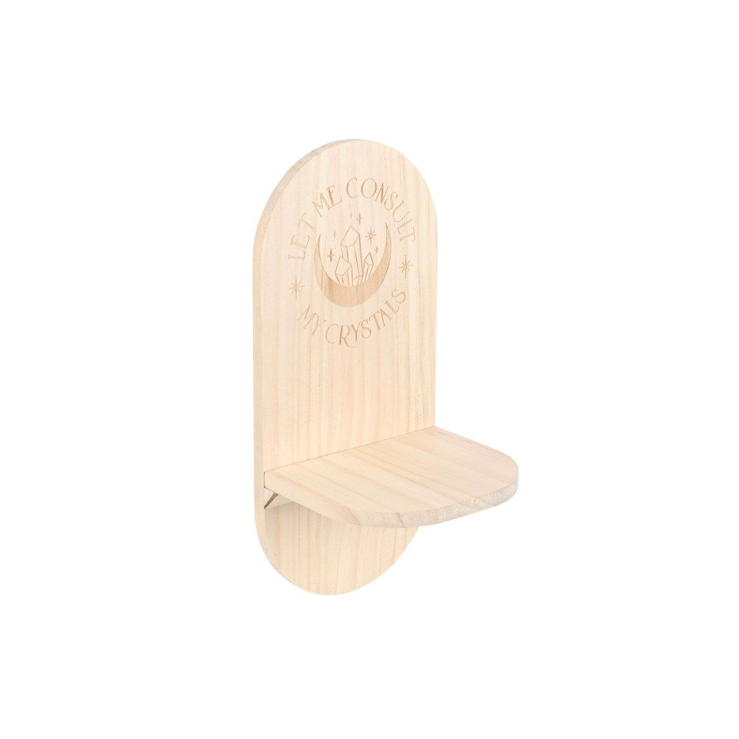 Create a space to recentre and focus with this wooden 'Let Me Consult My Crystals' altar shelf. Display crystals, tarot cards, words of affirmation and other items of spiritual significance to aid in manifesting dreams and goals.