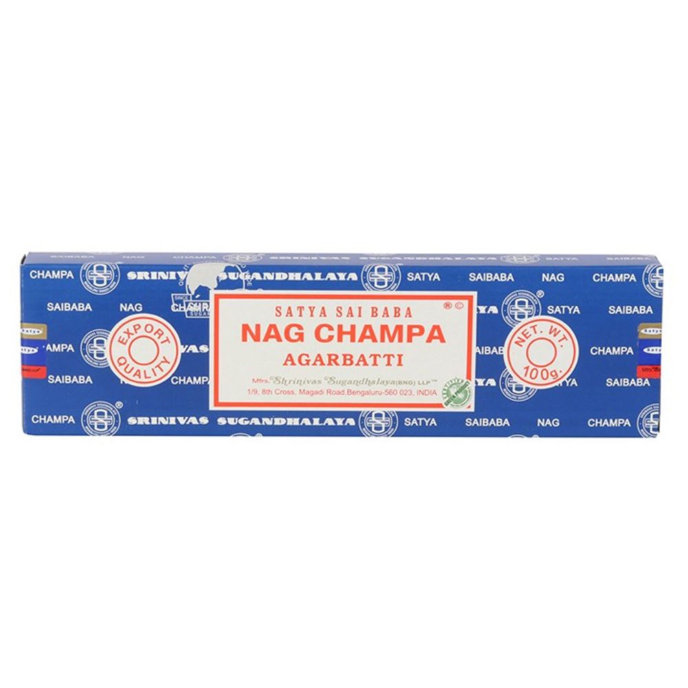 This box contains 6 x 100g packs of the bestselling Satya Sai Baba Nag Champa incense sticks. These incense are handmade by artisans in India using the highest quality ingredients. Nag Champa is a popular all-round incense used to purify and sanctify as well as for meditation and spiritual enlightenment. Each inner pack contains 20 vegan friendly incense sticks. Burn time per stick is approximately 45 minutes. Product Dimensions: H2cm x W23cm x D6.5cm Packaged Dimensions: H7cm x W23cm x D13cm