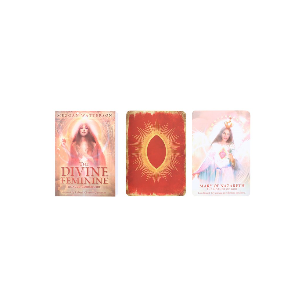 The Divine Feminine card deck by Meggan Watterson includes a 53-card deck and informational guidebook. This deck is designed to help individuals nurture and embrace the divine feminine within themselves, offering healing, strength, and transformation through representations of saints, goddesses, and holy women from various cultures worldwide. It acknowledges the essential role of the feminine in the world, emphasising the importance of reconnecting with and embodying this aspect of oneself.