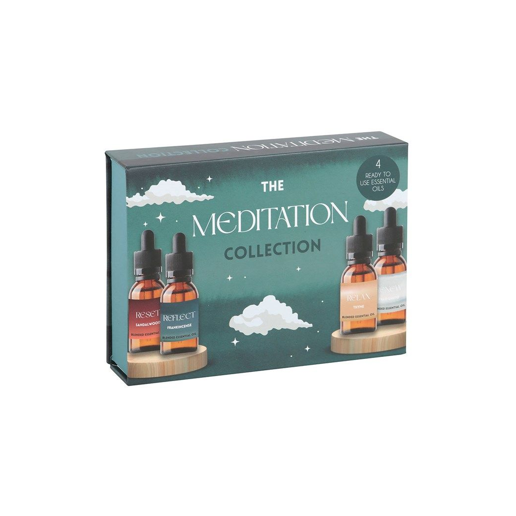 Pause and reset with this Meditation collection of ready to use, blended essential oils. The set contains 4 x 10ml bottles with a dropper tool lid, helping to apply just the right amount of oil for each use. The scents you'll discover in this set are: Reset - Sandalwood, Reflect - Sandalwood, Relax - Thyme, Renew - Palo Santo.